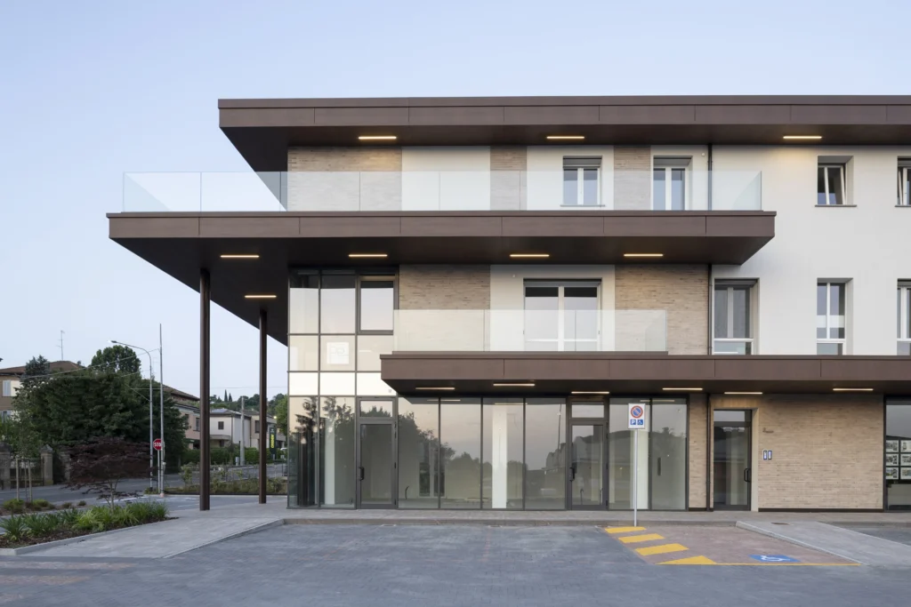 Il fabbricato infatti è stato realizzato nel 2024 a seguito di un importante intervento di rigenerazione urbana che ha permesso di demolire un precedente fabbricato ad uso produttivo sito nel centro del paese e in disuso da diversi anni, riqualificando interamente l’area e progettando un fabbricato nuovo, efficiente, moderno ma che al contempo si integra con il contesto con leggerezza e attenzione al paesaggio.